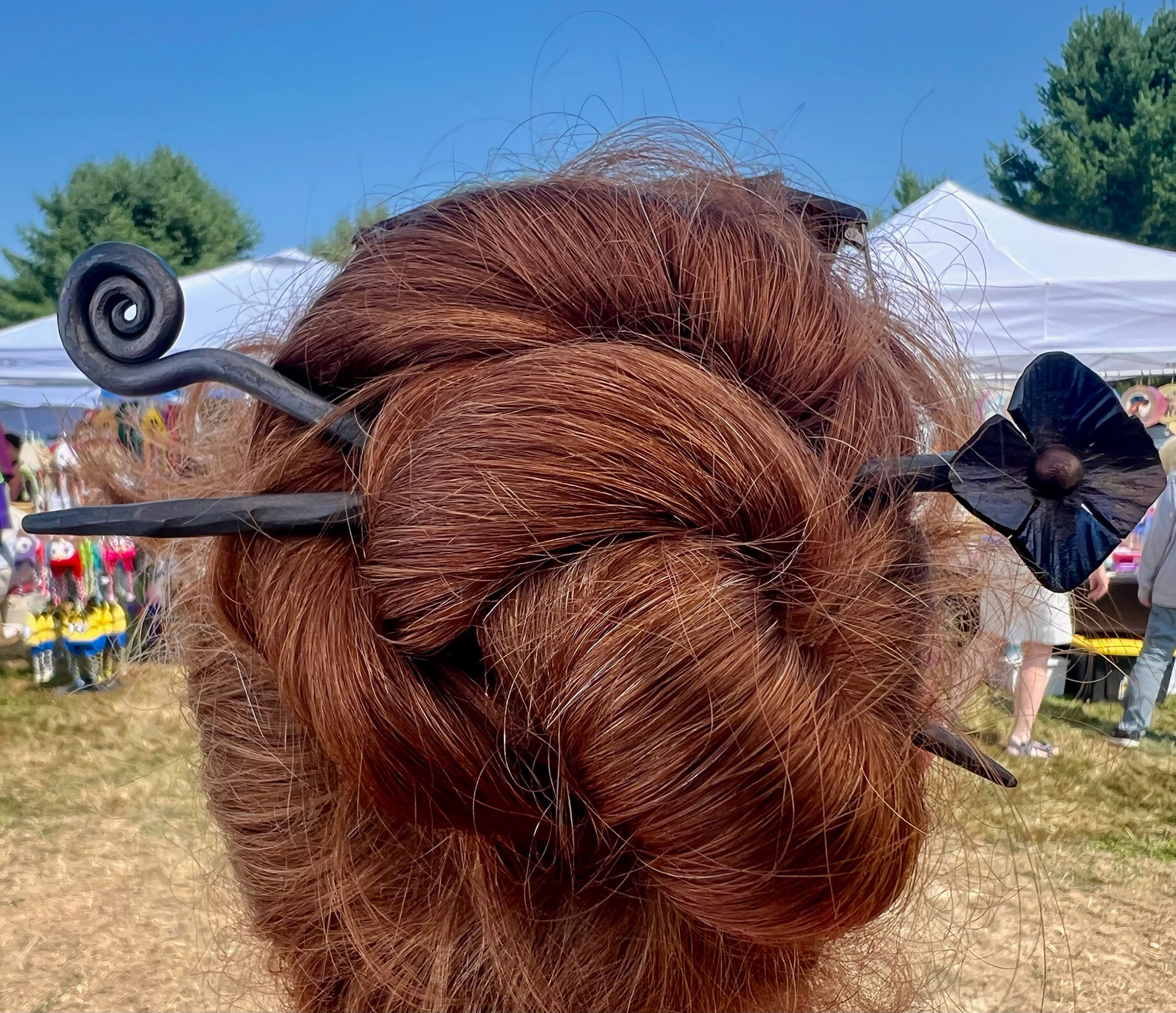 Forged from 1/4″ solid steel this hair stick is strong and will never break on you. The hand-forged nature, as with everything I forge, gives you a quality product that’s going to last and last and last. It’s not plastic, or some weak metal alloy, but solid steel. There is nothing cheap or flimsy about this.