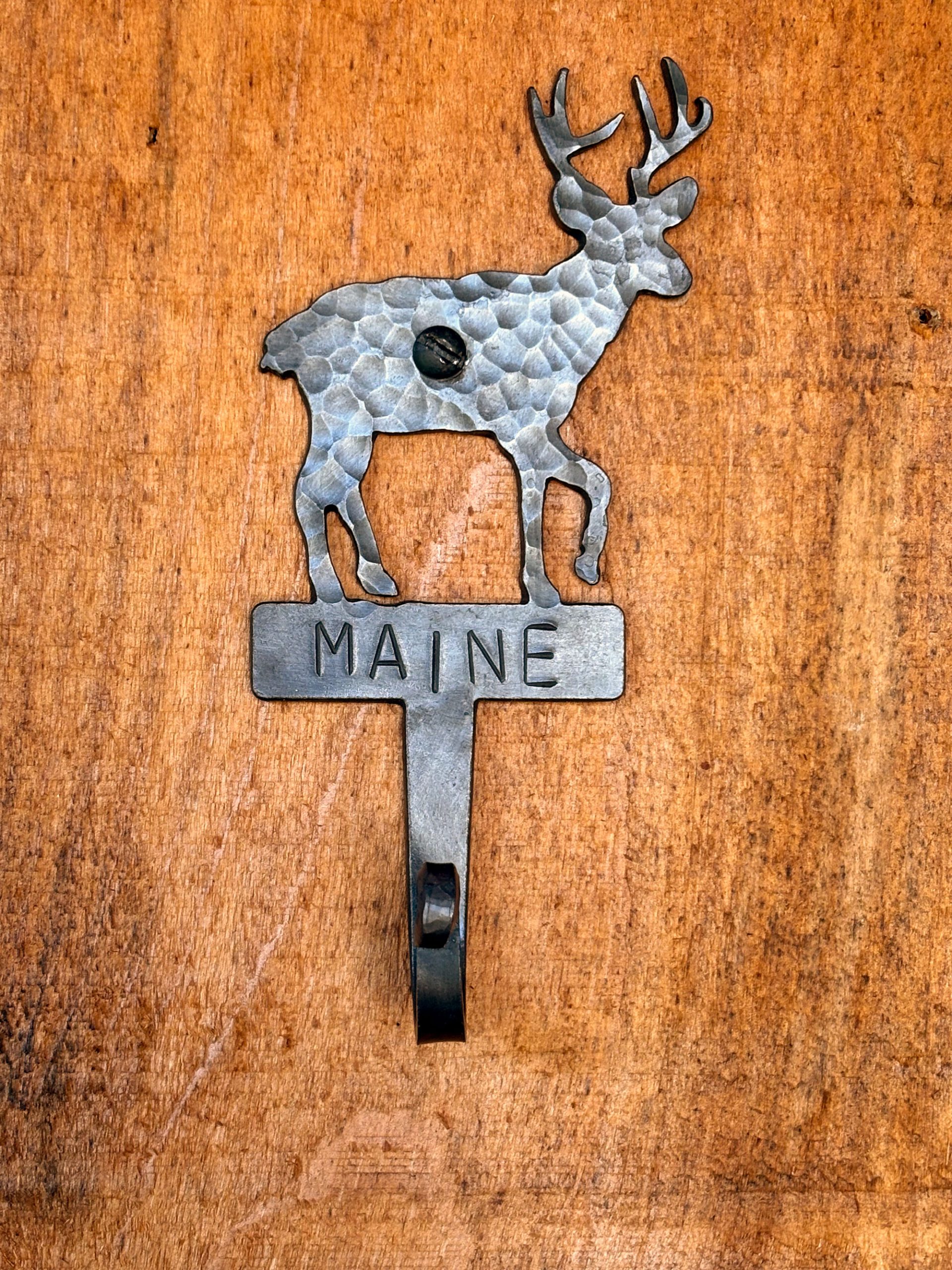 The deer features a hammered texture that’s fun to look at. On the area below you can add a name, phrase, whatever you like. I have a few sizes of letters available so I can accommodate most anything. The letters you see in the picture are the largest I have. You can get about 6 letters at that size but I do have smaller letters for longer words.